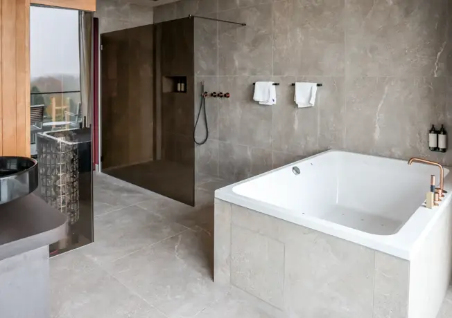 Nos suites bien-être se trouvent dans un environnement calme, tout près de la Meuse et entourées de verdure. Cela en fait l'endroit idéal pour un séjour détente. Avec des baignoires, des douches à effet pluie et des saunas privés, vous profitez du bien-être dans votre propre chambre. Les suites sont spacieuses, luxueuses et parfaites pour ceux qui veulent s'échapper un moment de l'agitation et profiter d'un instant pour eux-mêmes.
