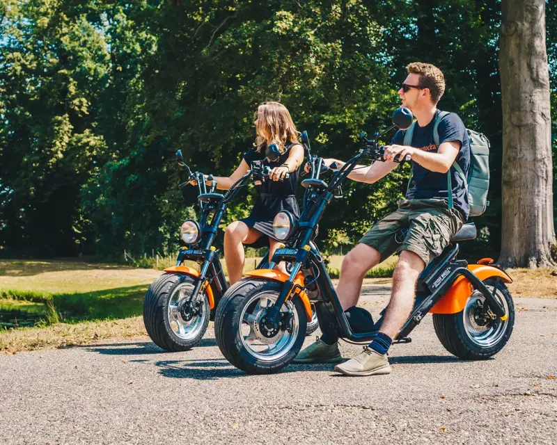 L'E-chopper a une marche d'accès basse et convient donc à tout le monde, jeunes et moins jeunes ! Avec un permis auto ou scooter, vous pouvez conduire l'E-chopper.