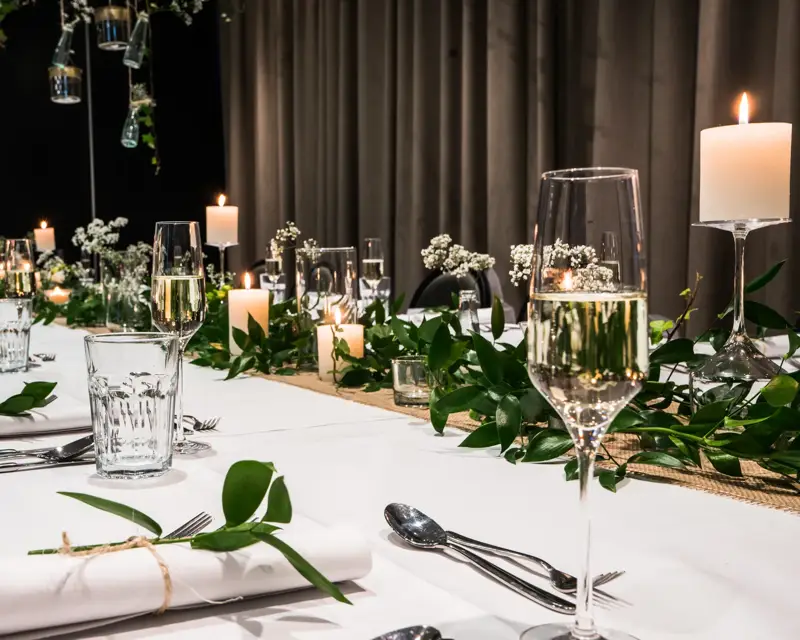 Les salles sont aménagées de manière moderne et chaleureuse et peuvent être entièrement aménagées selon vos souhaits. Pensez à un éclairage d'ambiance, à une décoration florale, à différentes dispositions et à des possibilités pour la musique et le divertissement. Ainsi, nous créons ensemble l'ambiance qui convient à votre journée.