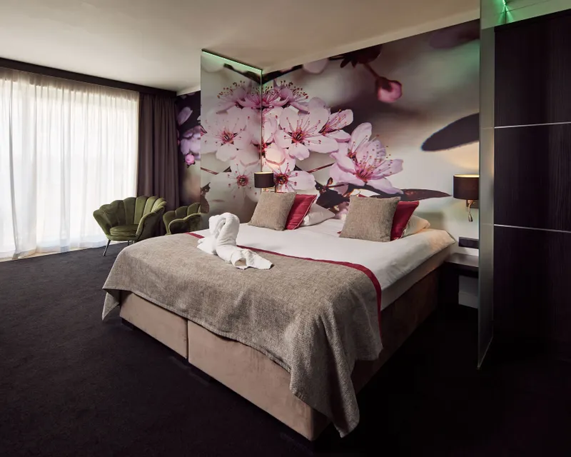 Even er tussenuit met uw geliefde? Dan is Suite 110 iets voor u. De suite is uitgerust met luxe voorzieningen zoals een kingsize bed en een bad met ruimte voor twee personen waarin u samen heerlijk kunt ontspannen. De ruime suite beschikt daarnaast over een flatscreen-tv met internationale zenders, klimaatbeheersing, een sfeerhaard en een zitgedeelte. Tevens staat er een mini koelkast tot uw beschikking die u tegen betaling kunt laten vullen met diverse snacks en dranken.
