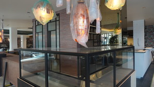 In het hart van het hotel staat de receptiebalie waar het team onze gasten vol enthousiasme welkom heten in het nieuwe hotel. De receptie is bijna klaar om gasten aan te verwelkomen en in te checken op de kamers. Als kers op de appelmoes zijn in alle ruimtes prachtige lampen en kroonluchters opgehangen die zorgen voor een sfeervol geheel.